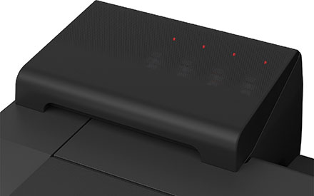 インクタンクカバーが半透明になり、LEDの点灯や点滅がカバーを開けなくても見えるようになりました。交換が必要なインクをカバーを開けずに確認できます。