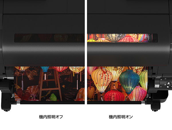 印刷中の様子が見える機内照明