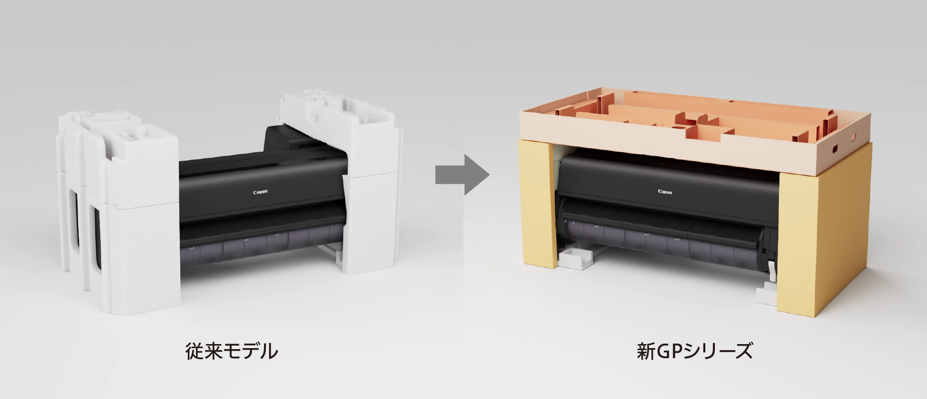 発泡スチロールを用いた製品梱包材を従来のモデルと比べて大幅に削減しました。PRO-2600は全廃し、PRO-4600では89.5%、PRO-6600では58.9%削減し、リサイクル可能な段ボールを使用しています。段ボールの製品梱包材は折りたたんで小さくできるので、設置時の廃棄物の量がぐんと少なくなります。