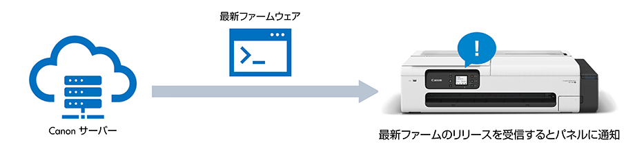 最新ファームウエアがサーバーにリリースされると操作パネルでお知らせします。