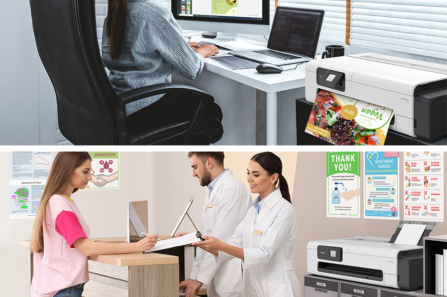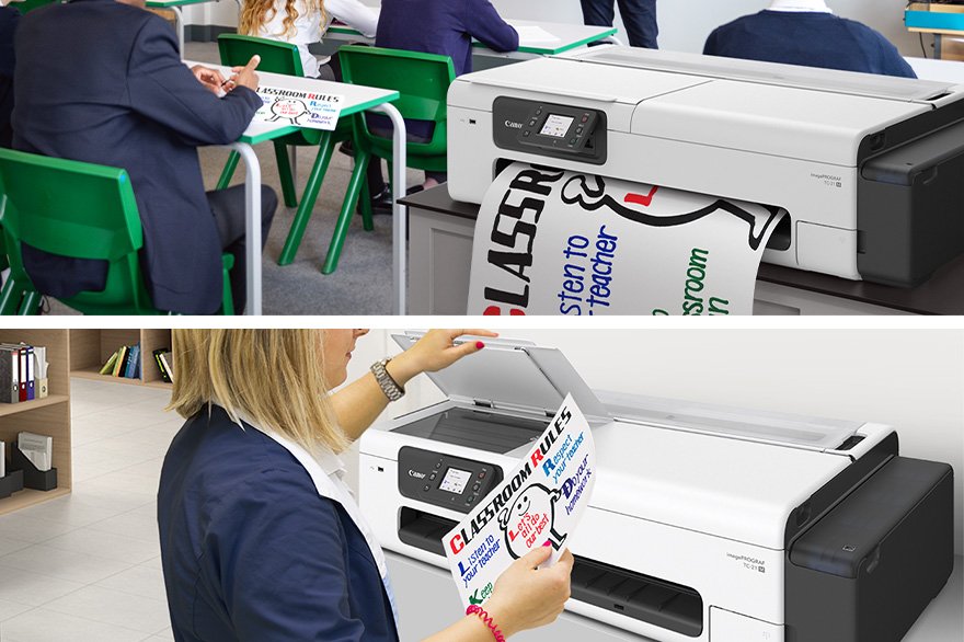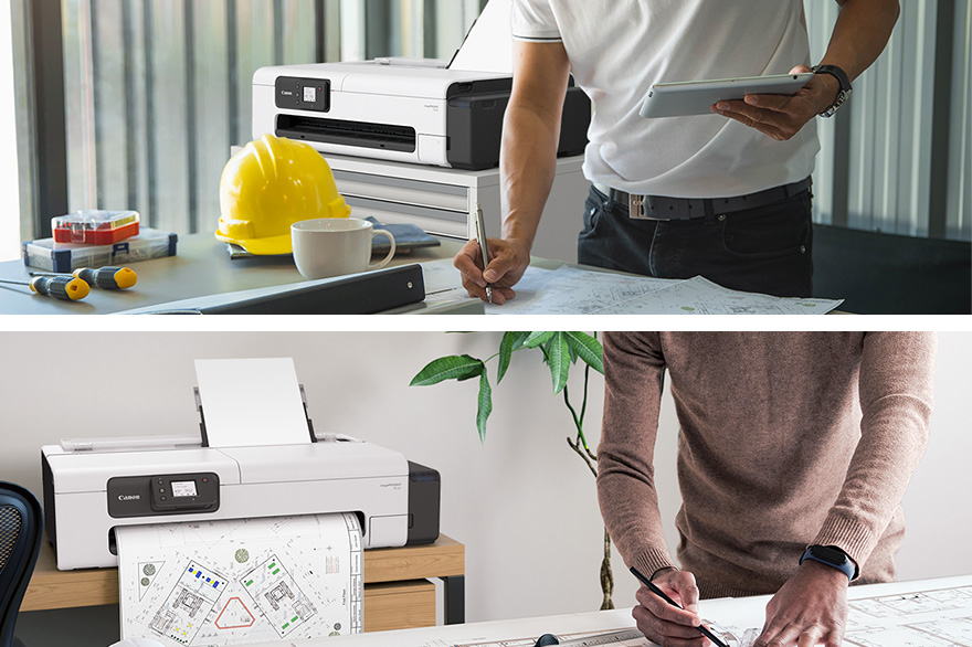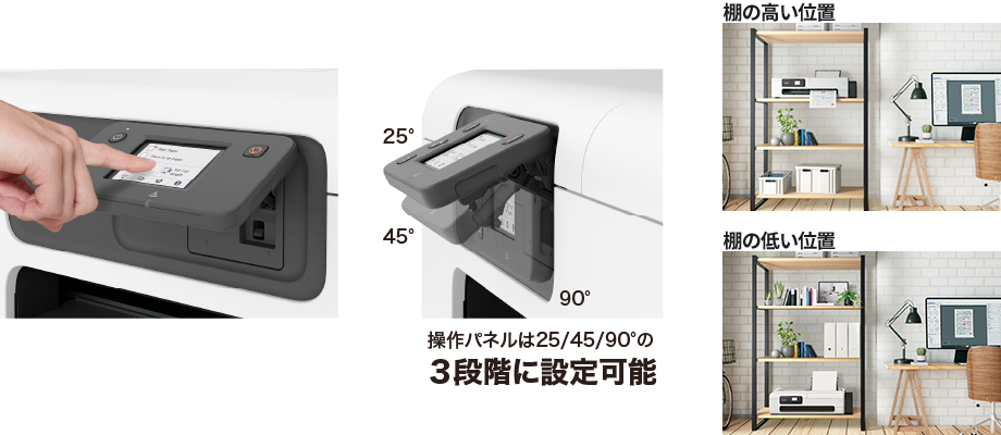A3からA1までの大判プリントを省スペース設計と快適な操作で実現。タッチ対応LCDは3段階角度調整が可能。