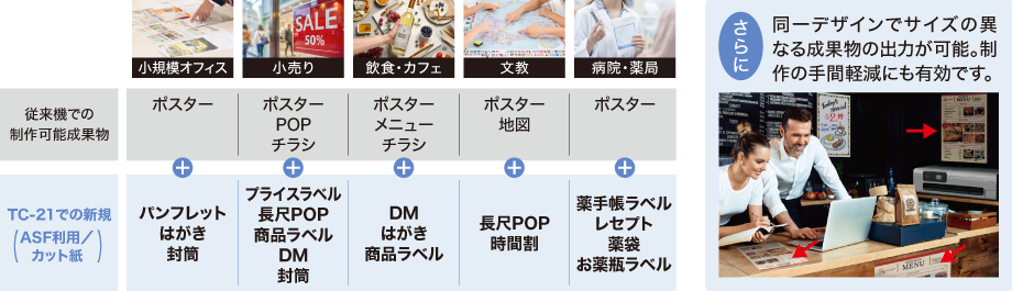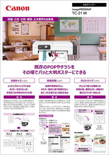 - TC-21 MならA4POPをA1サイズまでPCレスで拡大コピー可能