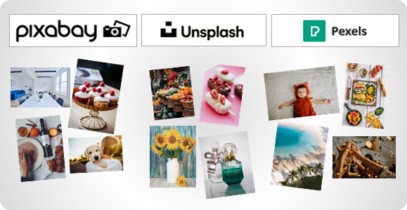 ストックフォトサービスのプロバイダ3社(Pixabay、Unsplash、Pexels)が提供する画像をポスター制作時に手軽にご利用いただけます。