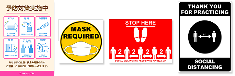 今回無償提供するテンプレートやクリップアートには、学校での手洗いを促進する掲示物、オフィスや工場でのソーシャルディスタンス維持を注意喚起するポスター、飲食店のテイクアウト告知等が含まれ、多様な業種や目的に応じて選択できます。また、13言語に対応したテンプレートを用意し、複数言語ポスターの効率的な作成を支援します。テンプレートやクリップアートなどは、今後も順次追加していきます。