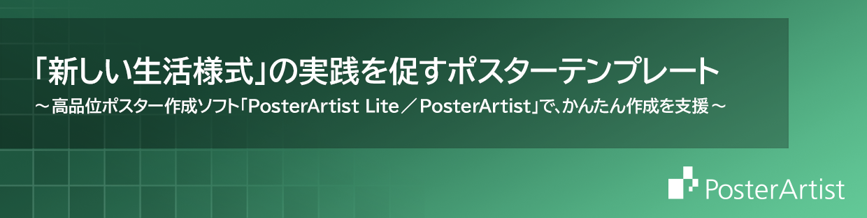 キヤノンでは、新型コロナウイルス感染症予防対策の「新しい生活様式」の実践を促すポスターテンプレートやクリップアートなどを2020年6月8日より無償提供致します。いずれも簡単に高品位なポスター作成ができるPC用ソフトウエア「PosterArtist Lite」(無償)および「PosterArtist」(有償)で利用できます。