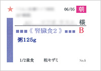患者名や詳細な食事内容などを記載して食事にセットされる「食札」は、患者の症状に合わせて用意される食事を、間違いなく提供するという役割だけでなく、患者に対しても、どのような食事を提供しているか理解してもらい、栄養管理の重要性も理解してもらうという役割もあり、病院の患者満足度の向上に貢献する重要なツールである。