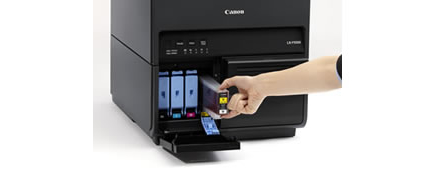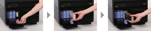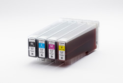 インクタンクは、BK/C/M/Yの各色ごとに交換できる独立型。各色一体型のインクカートリッジに比べ、使い切った色のみを交換するため、無駄がなく経済的です。また、各色240mlの大容量インクタンクを採用。インクタンクの交換頻度を減らし、業務効率の向上につなげます。