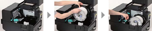 ロール紙の交換は、用紙がセットされたロールホルダーごと交換するだけ。また、出力された用紙のカットやジャム処理も、簡単操作で作業が行えます。