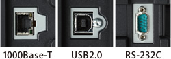 インターフェースには、1ギガビット/秒のデータ送信が可能な「1000Base-T」と「USB2.0」を標準搭載。さらにプリンターステータスを外部制御機器から取得することが可能な拡張インターフェースとして「RS-232C」を搭載しています。