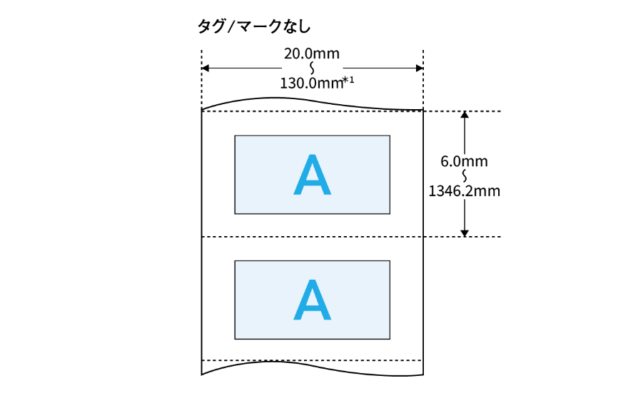 オートカッターユニット使用の場合は、ラベルサイズ(幅×長さ)やラベル間ギャップが異なります