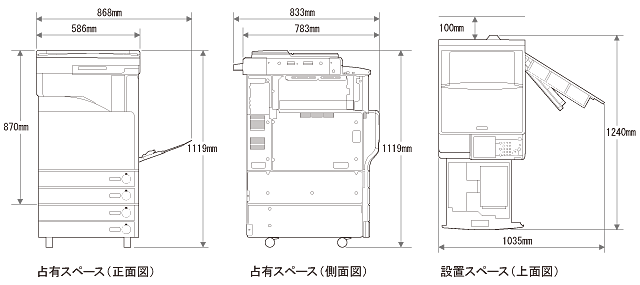 | 大きさ(原稿台カバーを含む) | 586mm(幅)×783mm(奥行)×870mm(高さ) | |