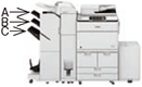 コピートレイ・R2 | シフトトレイ・F1 | ステイプルフィニッシャー・AC1 | ステイプルフィニッシャー・AC1+ペーパーフォールディングインサーターユニット・J1 | 中綴じフィニッシャー・AC2 | 中綴じフィニッシャー・AC2+ペーパーフォールディングインサーターユニット・J1 | ||