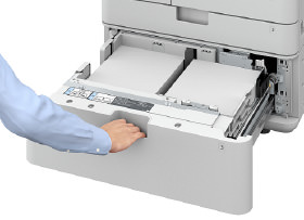 給紙カセットに自動引き込みアシスト機構を採用。用紙交換時のカセット開閉がスムーズに行えます。