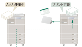 個人認証システムと連携して、自分のプリントジョブを、出力したいタイミングで、ネットワーク上のどの複合機からでも印刷することができます。プリントジョブは「アドバンスドボックス」に留め置くため、プリントサーバー不要でシステムを導入できます。