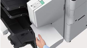 いつでも好きなときに原稿を綴じることができる便利なマニュアルステイプル機能を搭載しました。コピーするためにホチキスを外した原稿も、スキャン後すぐに綴じ直すことができます。原稿をセットするだけで、自動でステイプルされるので、スムーズに用紙を綴じることができます。子供の指が届かないように幼児に対する安全対策が配慮されています。