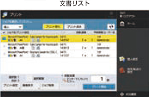 印刷データを本体内に留め置き、ログイン時に文書リストを表示。部数やステイプルなどの設定を、印刷前に確認・変更できます。また、複数ページを画面上に並べて表示し、仕上がりを確認できる印刷プレビューも便利。フリック操作でなめらかなページ送りが行えます。印刷完了までの時間も、文書情報をもとに予測可能です。放置プリントを抑止し、ミスプリントによる無駄なコストを削減します。