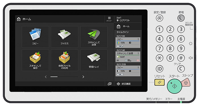 10.1inchにワイド化し、さらにフルフラット化。スマートフォンのような快適な操作感を実現しました。フリックやピンチイン・ピンチアウトはもちろん、「長押し操作」にも対応。各ファンクションやタイムライン上のボタンを長押しすることで「コンテキストメニュー」を表示し、「ホーム」画面へのボタン登録を簡単に行えるなど、設定を効率化します。