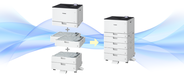 例えば、大部数のドキュメントを印刷する業務ならカセットを増設して、大量印刷に対応。セキュリティを高めるなら、留め置き印刷機能や認証印刷機能の追加など。業務スタイルに合わせて、各種オプション設備・機能の拡張が可能です。