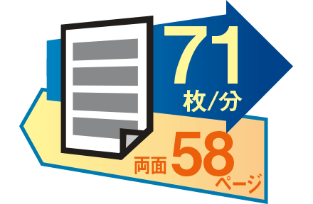 片面71枚/分※1、両面58ページ/分※1の高速プリントを実現。基幹業務や、医療現場のレセプト処理など、大量の出力が必要な業務でハイパフォーマンスを発揮します。