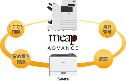 プリンターの可能性を拡げるJavaプラットホーム「MEAP ADVANCE(LBP版)」を標準搭載。MEAPアプリケーションを使用し、認証印刷や出力管理などの機能を拡張することができます。さらに、同じMEAP ADVANCEを搭載したキヤノンの複合機「imageRUNNER ADVANCE」との親和性をさらに高め、優れたデバイス連携を実現します。