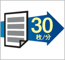 振り込み用紙などの細長い印刷をスピーディに行います。少量高速モードと大量印刷に適した一定速度モードの使い分けで帳票類の業務効率化に貢献します。