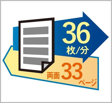片面36枚/分、両面33ページ/分※1の高速プリント