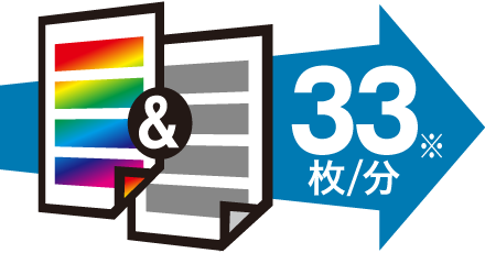 カラー・モノクロともに33枚/分※の連続出力を実現。また、スリープ状態から瞬時に立ち上がるクイックウェイクアップにより、急ぎの出力にも速やかに対応。ファーストプリントがカラー7.1秒、モノクロ7.1秒と快適なパフォーマンスにより仕事の効率を高めます。