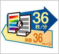 コンパクトなサイズながら、カラー・モノクロ毎分36枚(片面印刷)のスピードを実現。両面印刷も生産性100%の36ページ/分。枚数の多い印刷業務にもスピーディに対応。