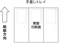 手差しトレイを使用する場合、用紙を横に向けて印刷面を下にしてセットします。