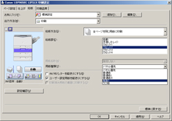 給紙方法の選択肢から[全ページを同じ用紙に印刷]を選び、給紙方法の選択肢から[カセット1]を選びます。