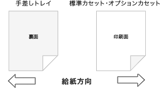 標準カセットやオプションカセットを使用する場合、用紙を横に向けて印刷面を下にしてセットします。
