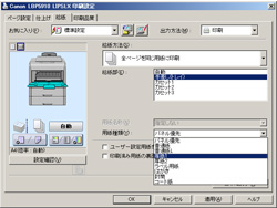 用紙タイプの選択肢から[厚紙2]を選び、[適用]ボタンをクリックします。