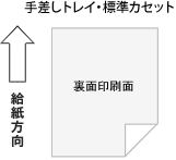 手差しトレイを使用する場合、用紙を縦に向けて裏面印刷面を上にしてセットします。