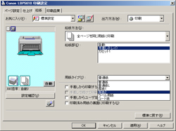用紙タイプの選択肢から[厚紙2]を選び、[適用]ボタンをクリックします。