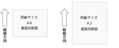 A3サイズの用紙は縦送りになります。用紙を縦に向けて印刷面を上にしてセットします。