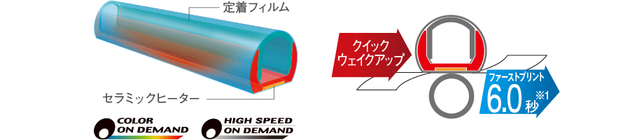 「オンデマンド定着方式」「クイックウェイクアップ」