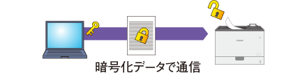 PCとプリンター間の通信データを暗号化して、データの盗み見や改ざんを防ぎます。離れた拠点への印刷も安全で、セキュアなプリント環境を構築できます。