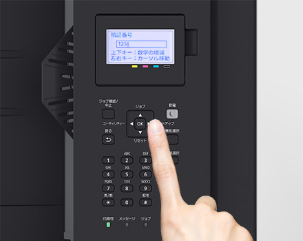 パソコンから文書を印刷するときに、印刷データを本機内にとどめてすぐには印刷されないようにすることができます。本機で本人確認を行ってからしか印刷できないよう設定することもできるので、大切な文書を他人に見られたり、取り間違いの心配もなく、安心して印刷することができます。