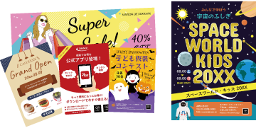 制作物・利用シーンで選べるチラシやポスターなどのテンプレートを多数ご用意。