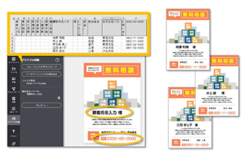 顧客先の名前や期日などの情報を可変させたチラシを作ることも可能です。
