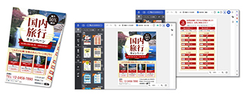 チラシやポスターのデザイン制作をサポートする無料のウェブアプリケーション。PCブラウザにアクセスして操作が可能。デザイン制作がかんたんに行えます。