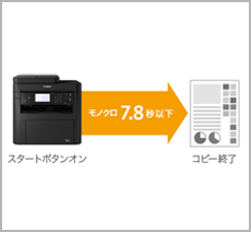コピー開始から終了までの時間。原稿台使用時。節電モードからの復帰直後と電源投入時を除く。