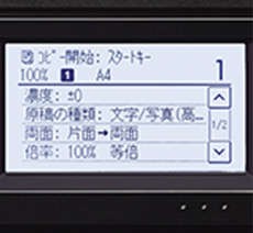 A4片面等倍時。普通紙、同一データを連続印刷した場合の速度です(コピーは原稿台使用時)。はがきや小サイズ紙など、用紙の種類・サイズ・送り方向などによっては印刷速度が低下します。また連続印刷時に、複合機本体の温度調整や画質調整のため動作を休止もしくは遅くさせる場合があります。