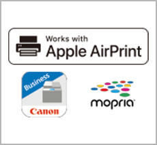 スマホやタブレットからWi-Fiを経由して印刷できます。AirPrint、Mopria、Canon Print Businessに対応しています。