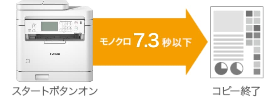 「毎分33枚※1高速コピー」に加え、 1枚目からスピーディーに出力
