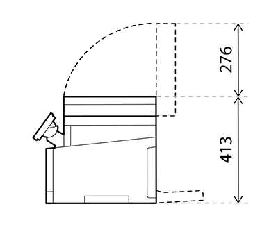 ADF、操作パネル、排紙トレイ、給紙カセットを閉じた時の寸法。