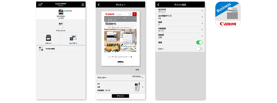 印刷可能データなどの最新情報は、「Canon PRINT Business」ページをご覧ください。
