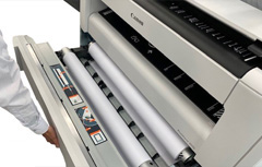 最長200m巻きのロール紙をセットできます。同一種類、同一サイズであれば、自動用紙切替により、400m(2×200m)までの連続出力が可能となり、用紙交換の手間が省け、業務効率が向上します。