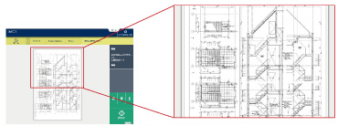 図面の再プリントは、マルチタッチパネルでプレビューして実行できます。図面をズームすることができ、細かい修正箇所も確認した上で再プリントできます。