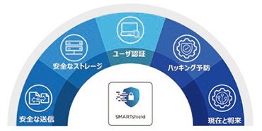 スマートシールドには、ICカードを使用したユーザー認証によるアクセス制限や、ディスクの暗号化、ハッキング対策等を含むセキュリティテクノロジーを搭載し、プリント業務のセキュリティを統合的に保護します。